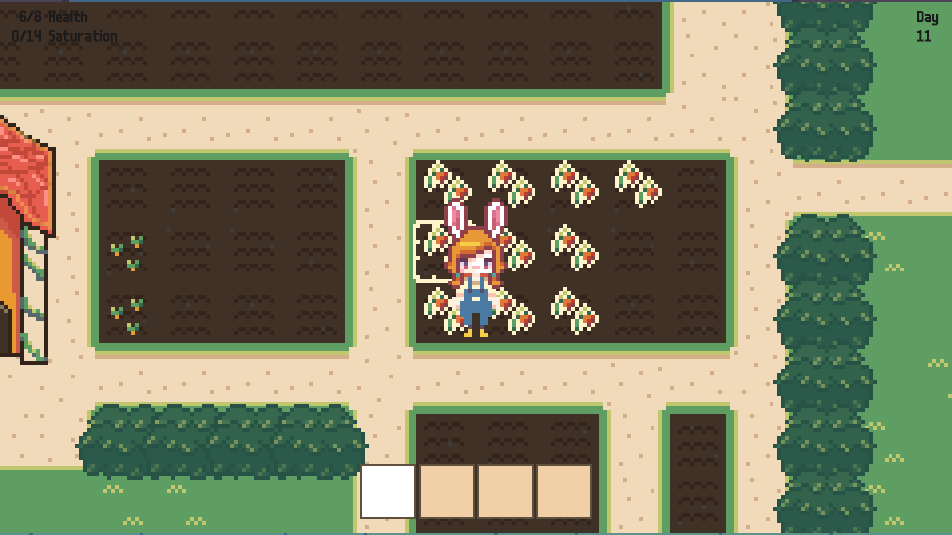 In HungryBunnies your job is to make sure neither you nor your big family of bunnies goes hungry. Plant different types of crops with varying stats and decide if you want to harvest them early for less reward. Use the composter to get new types of vegetables and try to survive for as long as possible.